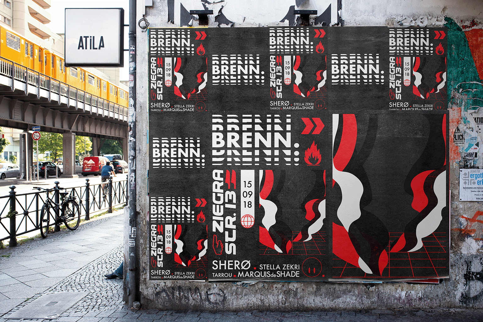 The visuals were created to promote the events on their social media channels. This allowed me to create more intricate elements in the designs. I would have loved to have seen them plastered across Berlin, so I made some mock-ups showing just that.